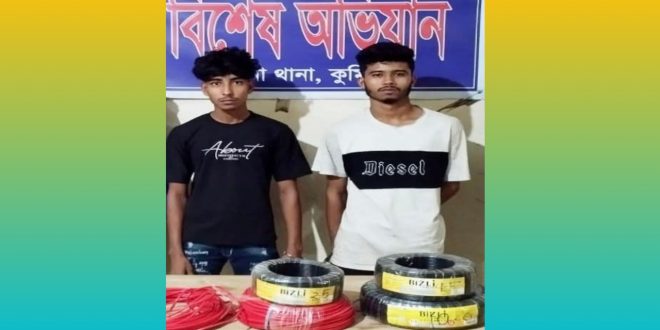 হোমনা( কুমিল্লা) প্রতিনিধিকুমিল্লার হোমনা পৌর সভার বাস স্ট্যান্ড এলাকার স্যানিটারীর দোকানে চুরির ঘটনায়দুই জনকে আটক করেছে পুলিশ।আটক কৃতরা হলেন, তিতাস উপজেলার বাতাকান্দি গ্রামের মোহাম্মদ আলীর ছেলে শেখ ফরিদ ওরফে বাদন (১৯) ও হোমনা উপজেলার আছাদপুর ইউনিয়নের চিৎপুর গ্রামের মো. নজরুল ইসলামের ছেলে মো. সিহাব (২৪)।থানাসূত্রে জানা যায়, গত ৯ নভেম্বর …
